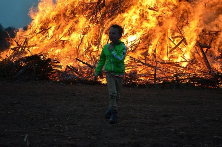 Hoe gaat het volgend jaar met het Hengeveldse Paasvuur? "Zolang er geen nieuwbouw is hier in de buurt kan het volgend jaar op dezelfde plek doorgaan. We zitten met de gemeentelijke regels van 100 meter van de woningen, 40 meter van de straat en 20 meter van de bomen", besluit Goselink.