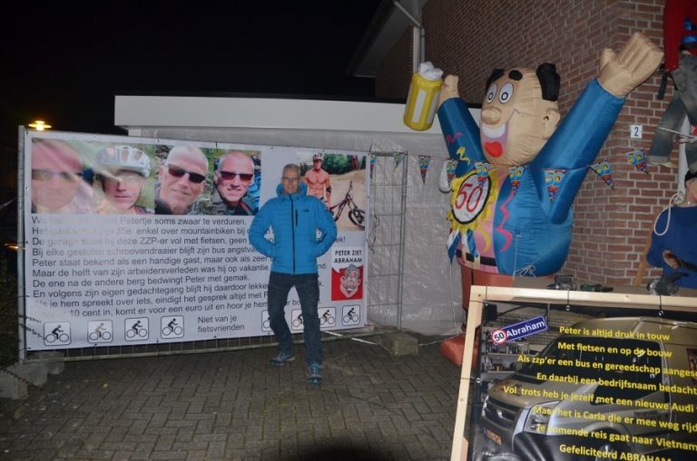 De man die wekelijks even veel uren praat over zijn mountainbike als hij er op zit is vandaag maar liefst 50 jaar geworden! Het spektakel in zijn voortuin aan de Diepenheimsestraat is enorm, de eerste attributen stonden er dan ook al enkele weken!
