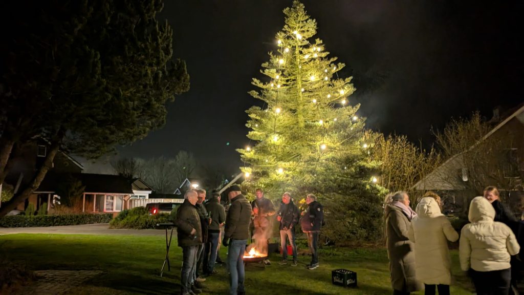 Aan de Pieperiet/Hekkemansbeld kwamen buurtbewoners samen voor een gezellige kerstborrel rond de verlichte kerstboom die al vele jaren dienst doet! Met een warm vuurtje en goede versnaperingen werd alvast vooruitgekeken naar de feestdagen.