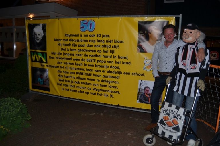 Hoewel hij normaal dergelijke berichten plaatst, is hij vandaag zelf aan de beurt. Raymond Wegdam, redacteur van Wegdamnieuws, bereikt morgen de respectabele leeftijd van 50 jaar. Dit ging vanavond niet onopgemerkt voorbij. Zijn hele voortuin werd door vrienden, familie, zijn gezin, buurt en collega volgezet met borden, spandoeken en Abraham's. Zelfs de brievenbus van de buurman moest worden verplaatst om het geheel kwijt te kunnen. Of de buurman hiermee wel akkoord gaat is bij de redactie niet bekend. Raymond, ook namens je collega-redacteur van harte proficiat!