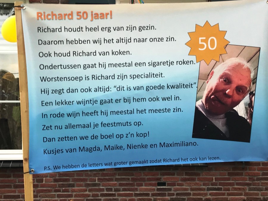 Richard ten Thije o/g Boonkkamp, vader van Maximiliano, Maaike en Nienke heeft deze week Abraham gezien.