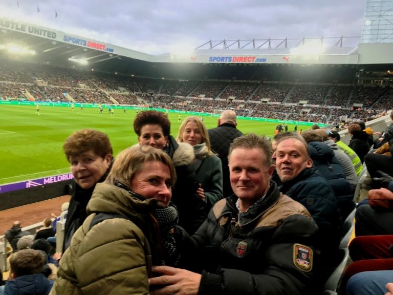Hoe uniek is het dat een vrouw op 86-jarige leeftijd een bezoek brengt aan de wedstrijd Newcastle United -Bournemouth? Het idee is spontaan geboren op Koningsdag. Een stel vrienden zit wat bij elkaar en keuvelt wat en plotseling komt het onderwerp op tafel van Gerard te Lintelo; Het ‘petekind’ van Riky Schonenborg is de eigenaar van een waar dieren ziekenhuis in Engeland. Haar grote wens is dat ze daar toch een keer naar toe zou kunnen! Zo kwam er een vergeeld adressenboekje voor de dag: Het bleek in de buurt van Newcastle te zijn. De link met een voetbalwedstrijd werd al snel gelegd en de woorden van Riky waren; “Ik wil ook wel naar die voetbalwedstrijd!” Er werd bijna ter plekke actie ondernomen en in no time was het geregeld.