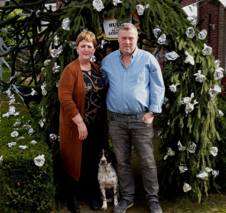 Maandag 14 oktober zijn Rudie en Johanna 25 jaar getrouwd. De buurt heeft afgelopen donderdag de tuin versierd. Aankomende vrijdag zal dit groots gevierd worden bij herberg Gebrande Waateren.