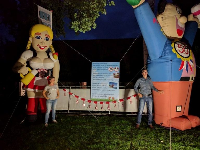 Een spektakel van jewelste aan de Bentelosestraat, maar er is niemand jarig! Hoe zit dat Harold Nijhuis? "Mariëlle is pas in december 50. We houden vanavond feest omdat we rond deze datum samen 100 zijn! De familie heeft nu Abraham en Sara gezet. In december komt er nog wel weer een Sara!"