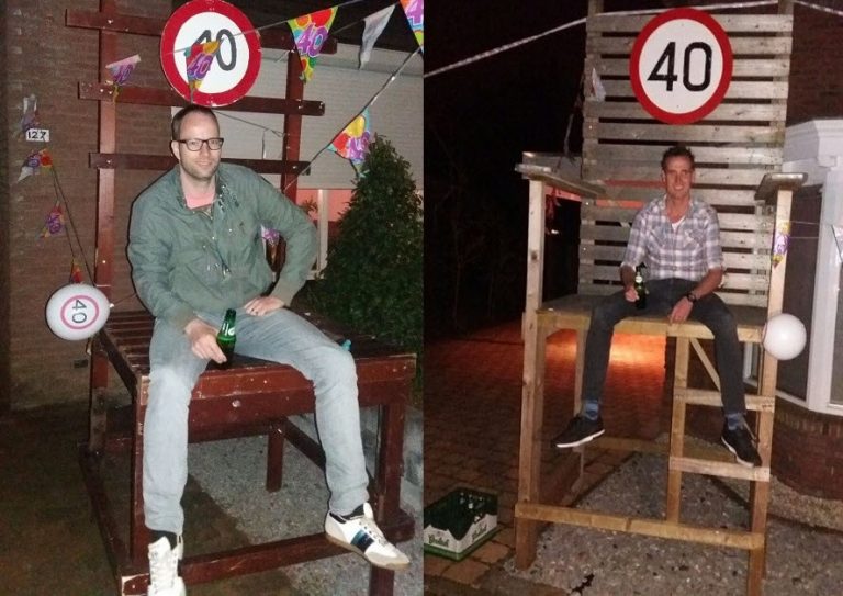 Beiden kregen op dezelfde avond een mega stoel in de voortuin vanwege hun 40e verjaardag!
