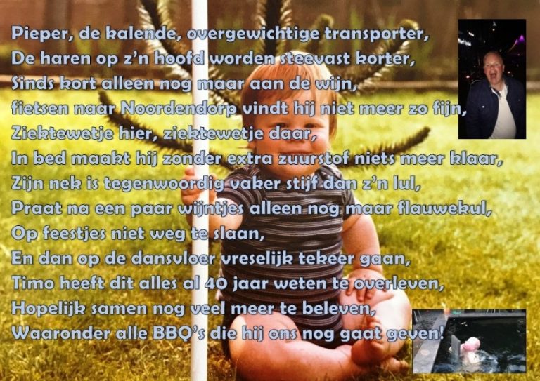 Haaksbergenaar Timo Pieper, de oud Hoevenaar die de meeste tijd van zijn jeugd in Hengevelde en bij café Assink heeft doorgebracht is vandaag 40 jaar geworden.