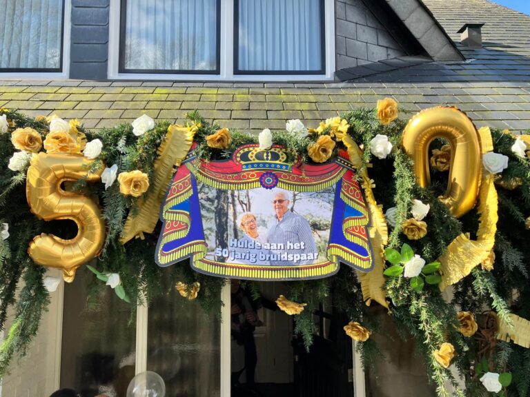 Afgelopen zaterdag waren Tonny en Diny Tuinte, woonachtig in de Klumperstraat, 50 jaar getrouwd. De buurt had alles prachtig versierd én Casper Bebseler had het top voor elkaar. De familie: “Het was een fantastisch feest en het bruidspaar heeft mega genoten.” Namens familie en uiteraard ook de redactie van harte proficiat!