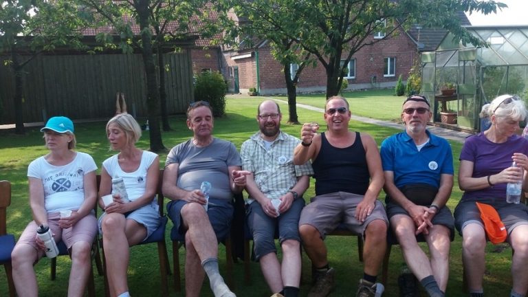 Een bijzondere tocht, dat mag gezegd worden, gelopen door oud Hengeveldenaar Valentijn Brummelhuis. Zijn wandelpassie is ooit begonnen bij de Nijmeegse Vierdaagse, tot het moment dat hij Ludwig van het café Reirink in Zwillbrock tegenkwam, die had wel een tipje. Vrijdagochtend startte voor Valentijn midden in de nacht zijn 13e editie van Vreden naar bedevaartsoor Kevelaer. Om 4.45 uur begon de dag met een Heilige Mis waarna de wandeltocht van 60 kilometer via Bocholt richting het Duitse Rees ging. Rond de klok van half zes hoopt hij daar aan te komen voor de overnachting in de plaatselijke ‘sporthalle’. Dit alles met een aantal van rond de vijftig personen, waaronder slechts twee Nederlanders. De eerste pauze was na drie uur wandelen in klooster. “Ik heb twee keer de Nijmeegse Vierdaagse gelopen en daar moest ik vrij voor nemen. Nu niet, en samen met mijn buurman Gerard Assen ben ik al vroeg op pad. Onderweg zijn er de nodige ‘schnaps pauzes’ ingebouwd, hetgeen het allemaal een stuk aantrekkelijker maakt natuurlijk ha ha! Bijvoorbeeld rond 11.00 uur stonden er bij een jachthut 8 flessen voor ons klaar, en die moesten leeg! Drie ‘schnapjes’ per persoon, dat zweten we er zo weer uit ha ha!”