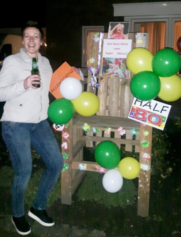 Alice Schottink-Kamp heeft dan uiteindelijk ook de 40 jarige leeftijd bereikt. Dat moest natuurlijk kenbaar gemaakt aan de buitenwereld en zo verscheen er vanavond de traditionele stoel in de voortuin.
