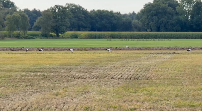 Als je op dit moment tussen Goor en Hengevelde rijdt, kun je een bijzonder tafereel tegenkomen. Minstens 18 ooievaars hebben zich neergestreken in een wei net buiten het dorp. Soms verzamelen de dieren zich in één grote groep, op andere momenten speuren ze in kleinere groepjes naar voedsel. Een oplettende lezer tipte Wegdamnieuws over deze bijzondere waarneming, waarvoor dank.