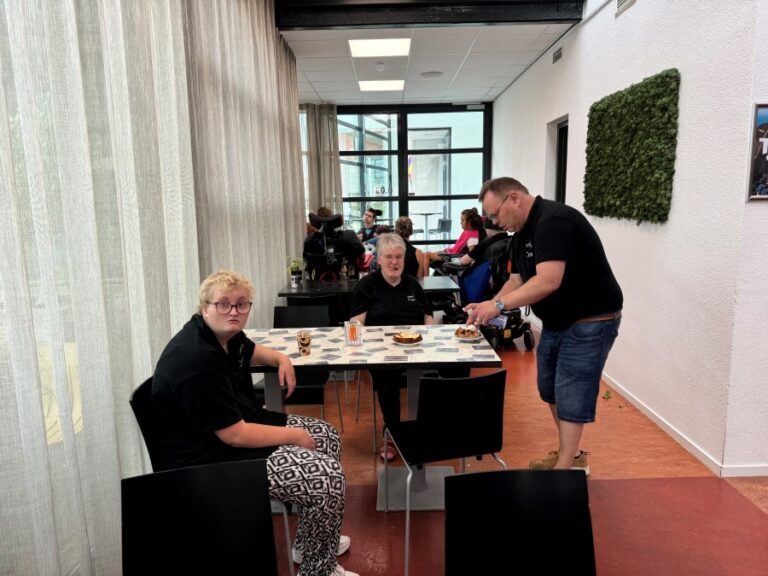 De koffie en het gebak maken ze zelf, ze doen het heel goed en met veel passie! Een prachtig sociaal gebeuren!”