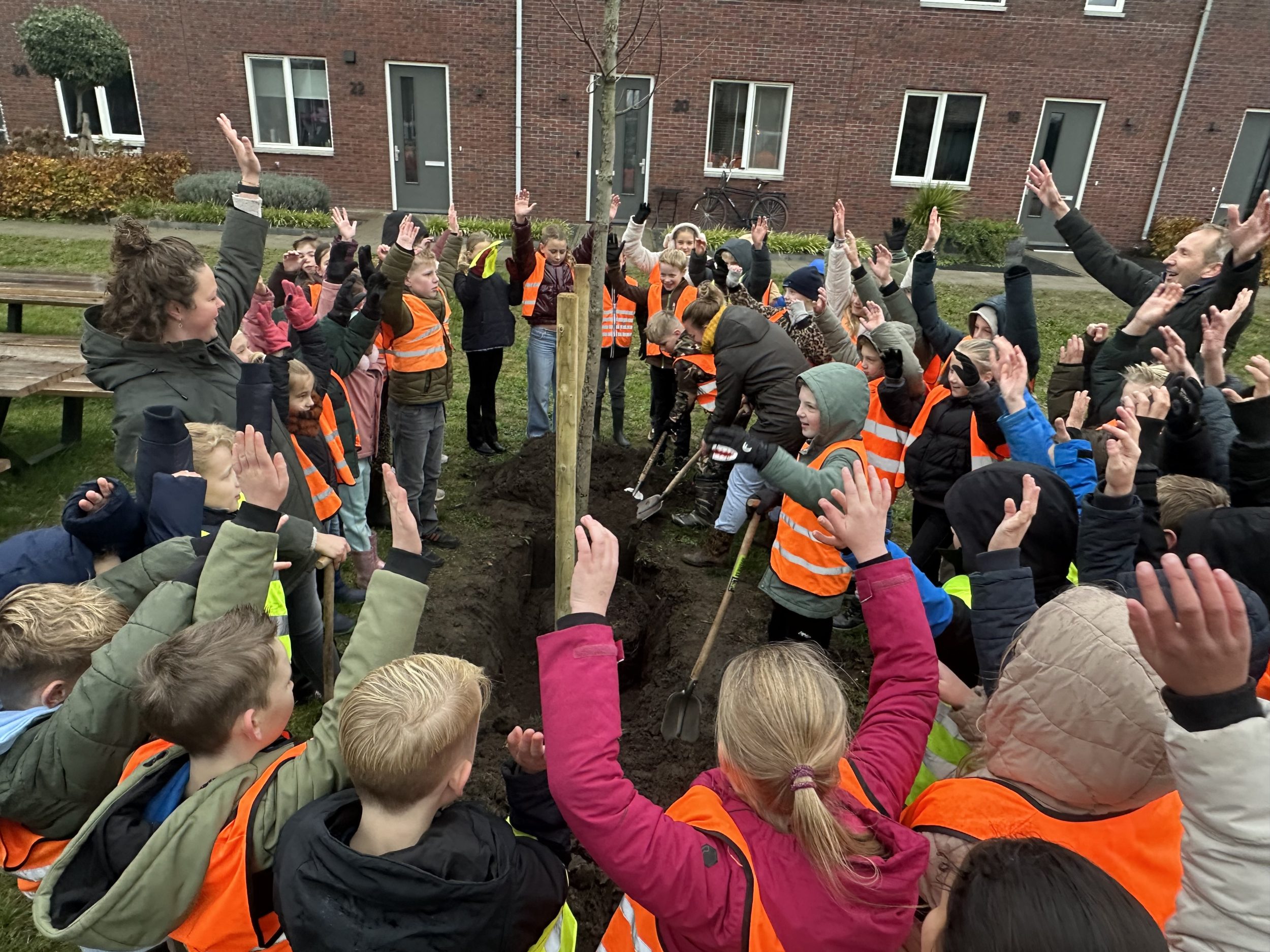 In de nieuwbouwwijk De Marke III werd woensdag 19 november Nationale Boomplantdag gevierd. Leerlingen van de Petrusschool trokken er speciaal voor op uit om samen met de gemeente en andere betrokkenen nieuwe bomen te planten. Met zichtbaar enthousiasme gingen de kinderen aan de slag om hun wijk groener en mooier te maken.