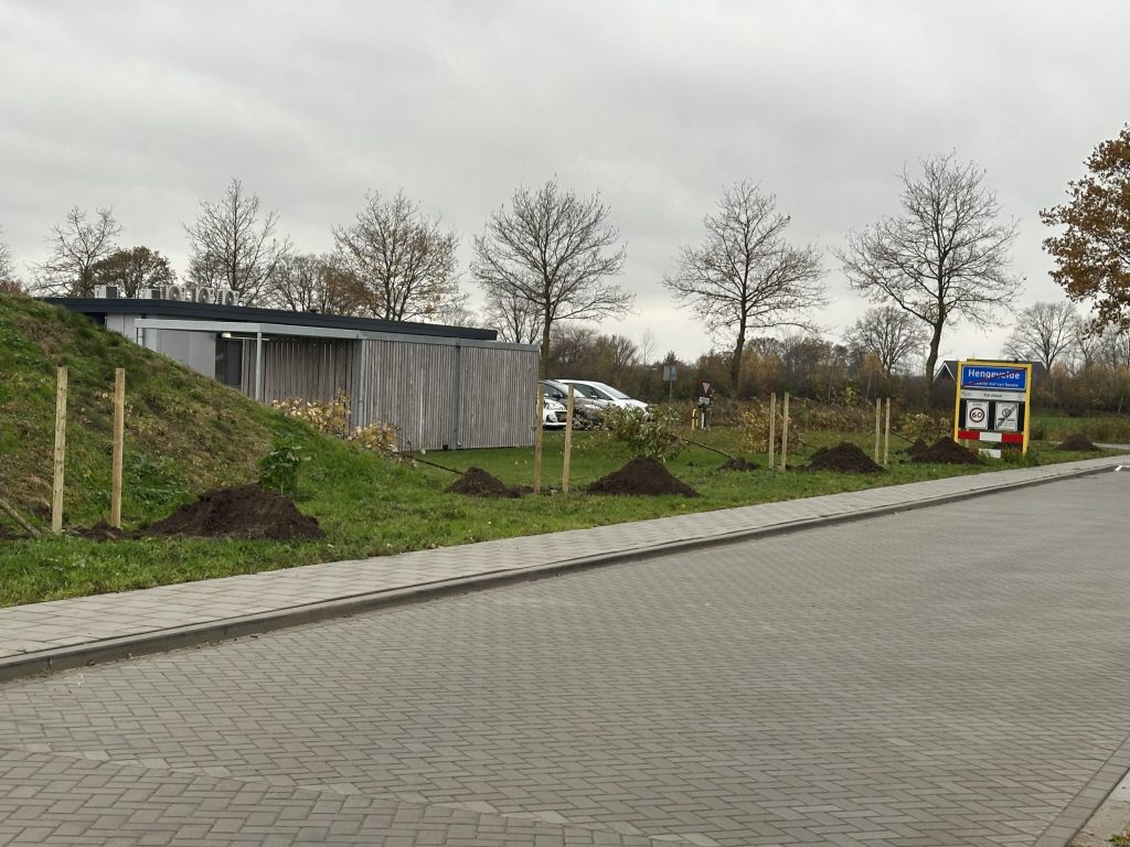 Naast de schoolkinderen waren ook medewerkers van Gildebor, vertegenwoordigers van de gemeente Hof van Twente en de Hengeveldse inwoner Ina van de Riet aanwezig. Zij zet zich al jaren in voor een groene leefomgeving en hielp de jonge planters graag op weg.