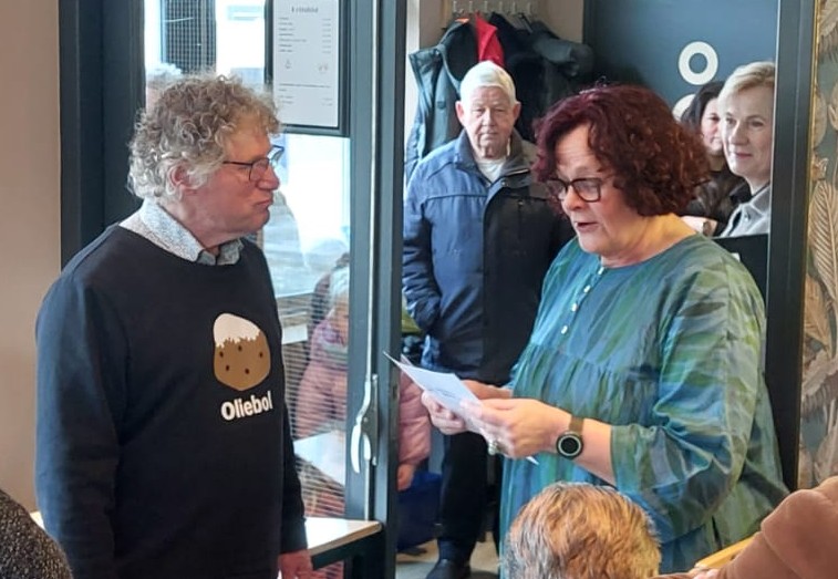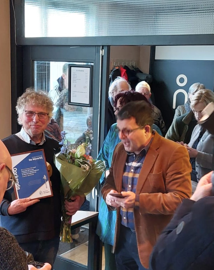 Wethouder Luttikholt roemde de geweldige inzet van Louis voor de buurt waarin hij woont. “Hij organiseert de wekelijkse inloop, beheert de verhuur en was nauw betrokken bij de inrichting, inclusief het kosteloos realiseren van een nieuwe keuken. Daarnaast is hij een vaste waarde bij activiteiten zoals de jaarlijkse oliebollenactie en de buurtbarbecue”, vertelde ze. “Louis is iemand die nooit nee zegt, altijd klaarstaat en met zijn fiets en kratje overal verschijnt waar hulp nodig is. Zijn inzet is grenzeloos en maakt Hengelo mooier, warmer en gezellig. Het is een eer om aan hem De Nijverbij te mogen uitreiken.”