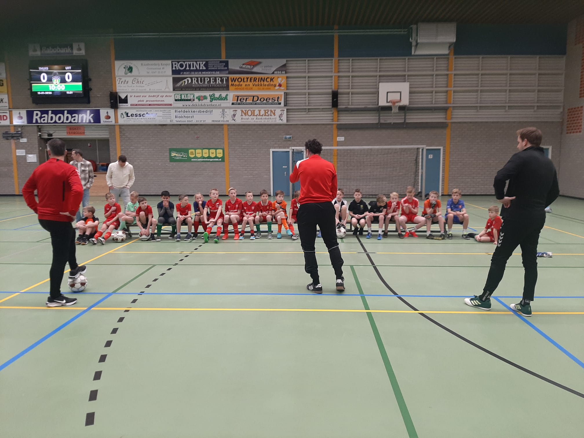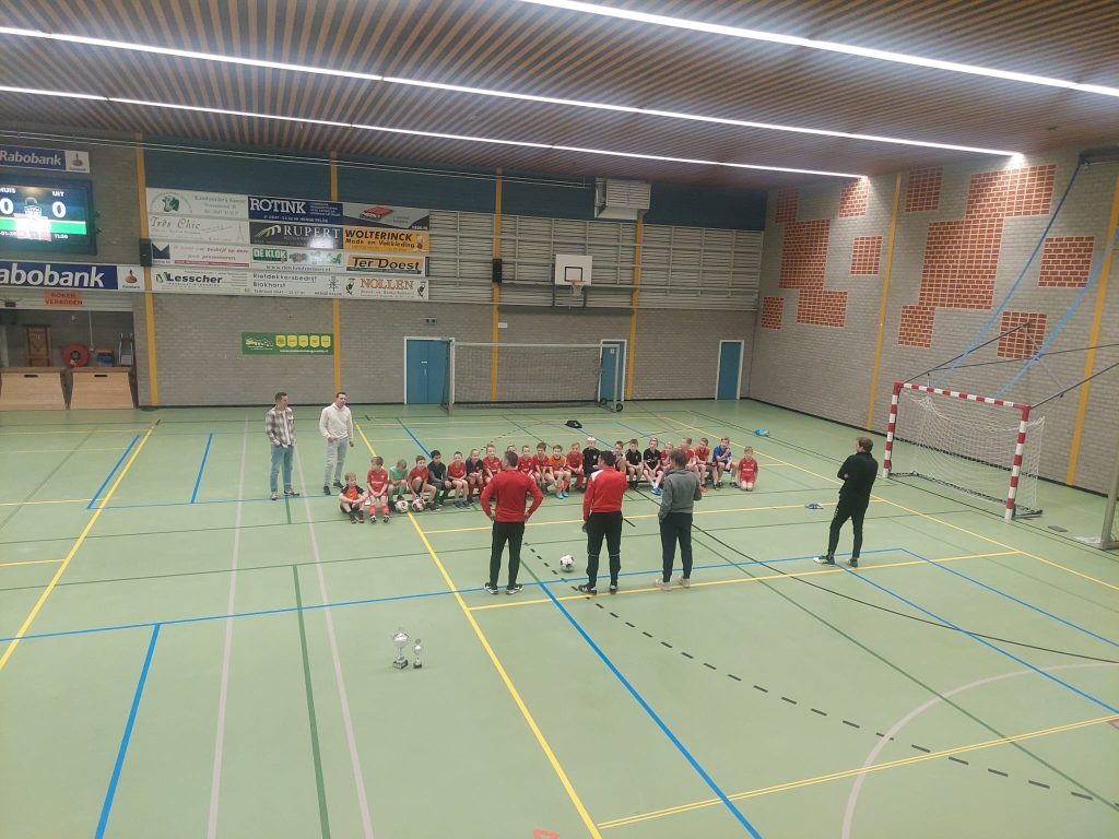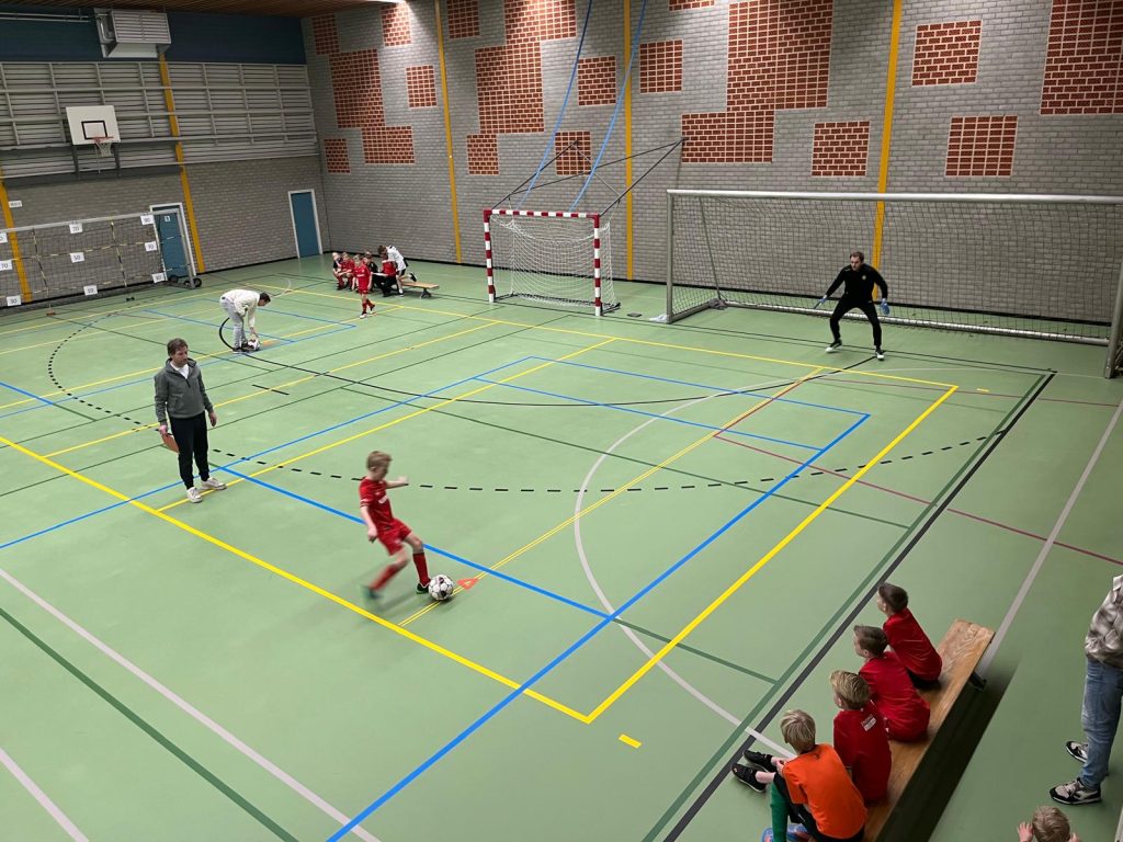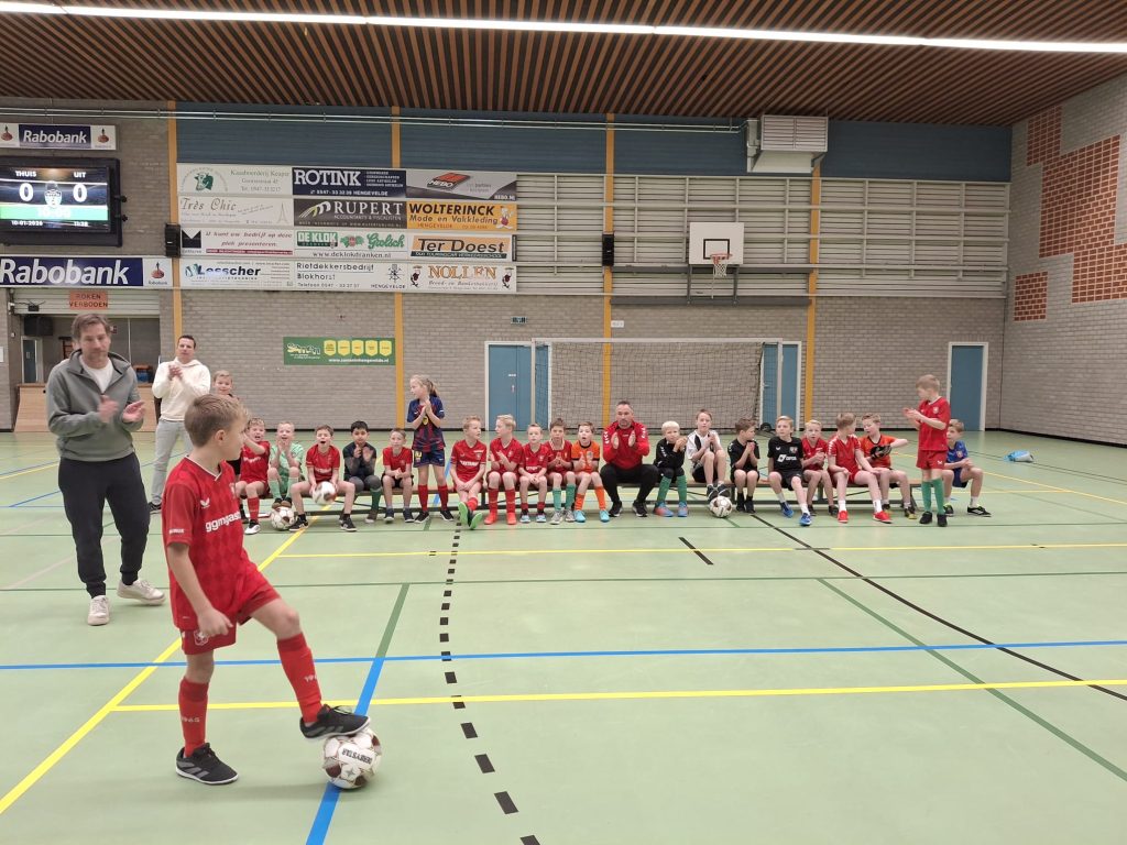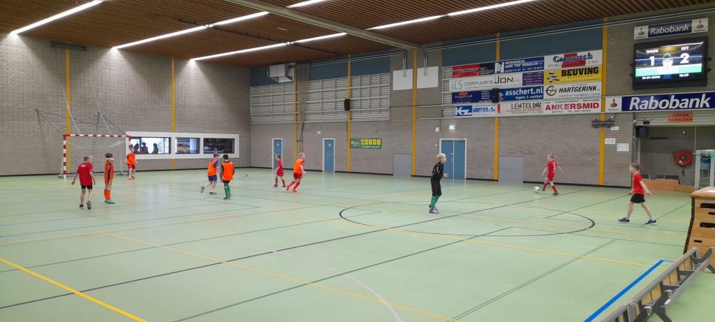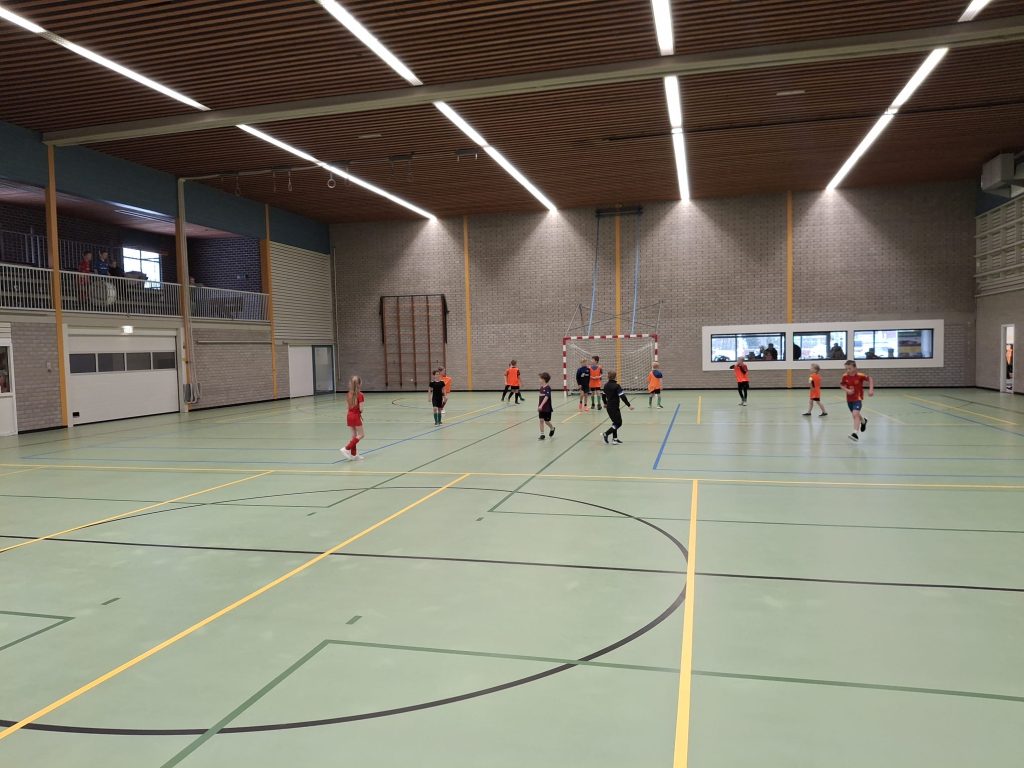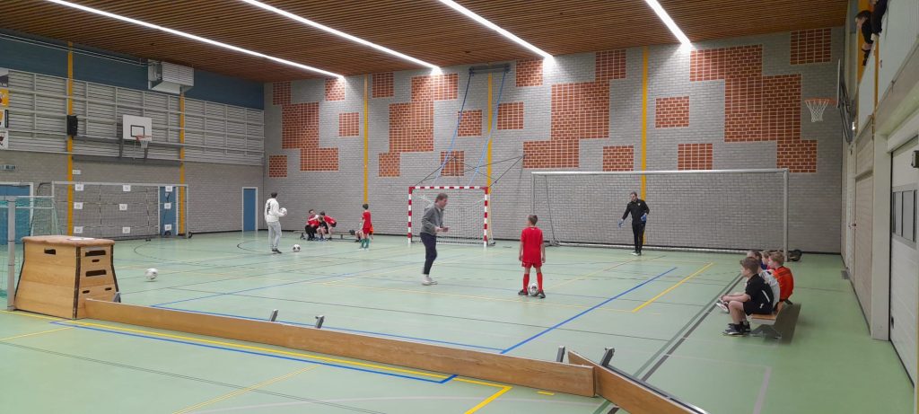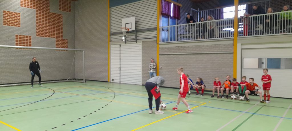Achter de tent, in de richting van de school, staat een fiets die niet op slot staat.