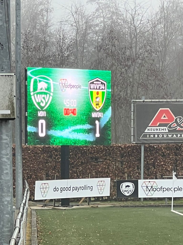 Na rust bleef WSV het initiatief houden, maar stuitte telkens op een goed georganiseerde defensie van WVV’34. Wissels aan beide kanten zorgden voor verse krachten, maar het overwicht van WSV leverde geen doelpunt op. Een treffer van Gijs Pierik werd overigens nog afgekeurd, waardoor de 0-1 stand bleef staan.