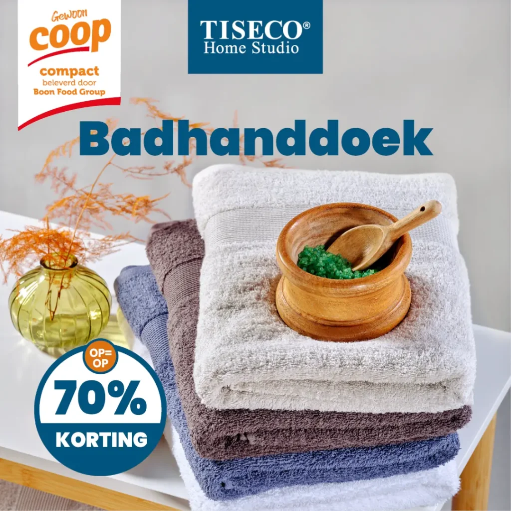 Voor in huis zijn er flinke kortingen op Tiseco badhanddoeken, met 70% korting. Ideaal om je badkamer een frisse update te geven.