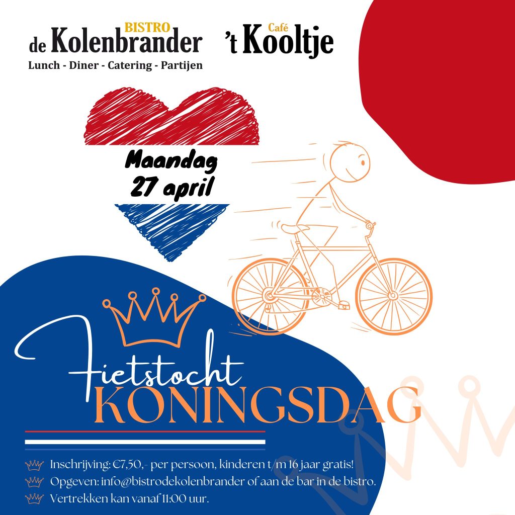 Op maandag 27 april vieren we Koningsdag en organiseert Bistro de Kolenbrander weer de jaarlijkse, gezellige fietstocht.