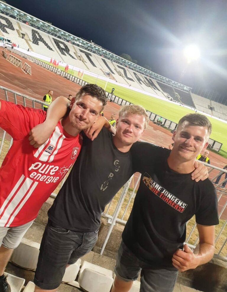 Berend Dubbe: “Luc Nijhuis, Edo ten Thije en Berend Dubbe zijn dinsdagavond om 2 uur begonnen met rijden naar het verre Servië. De reis verliep soepel en we kwamen na 17 uur aan in Belgrado. We hebben snel onze spullen gedropt bij het hotel en zijn wat gaan eten in de stad. Daarna met een taxi naar het stadion om de wedstrijd van Rode Ster mee te maken. Dat was een geweldige belevenis”.