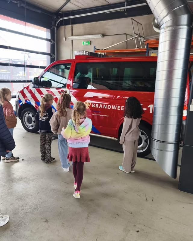 Ook de brandweerauto trok veel aandacht. De kinderen ontdekten welke onderdelen erin zitten, waar de blusslangen liggen en hoe alles wordt gebruikt bij een echte brand. Uiteraard mocht de sirene niet ontbreken, wat voor veel verwondering zorgde.
