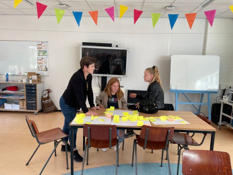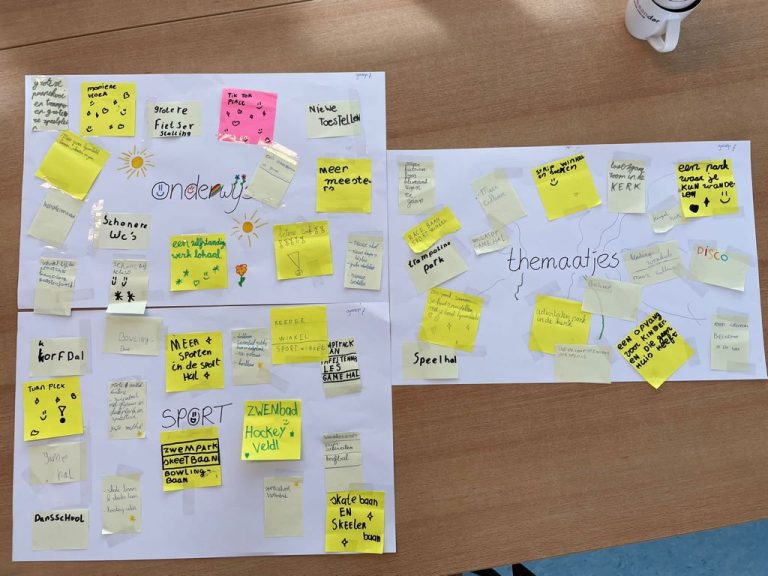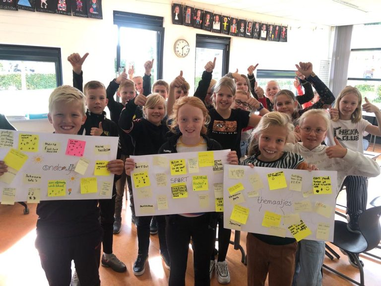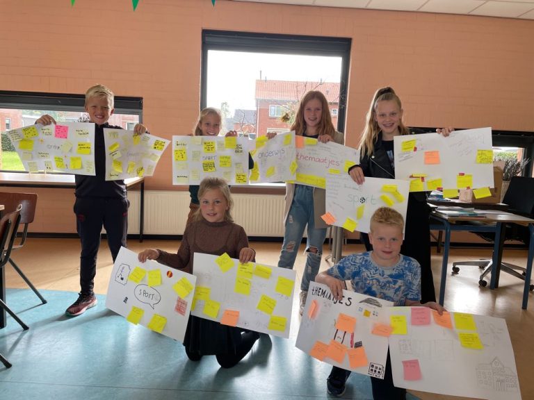 Vandaag zijn de groepen 6, 7 en 8 van de basisschool bezig geweest met de toekomst van ons dorp. In groepjes hebben de kinderen gebrainstormd over de thema’s; sport, onderwijs en themaatjes.