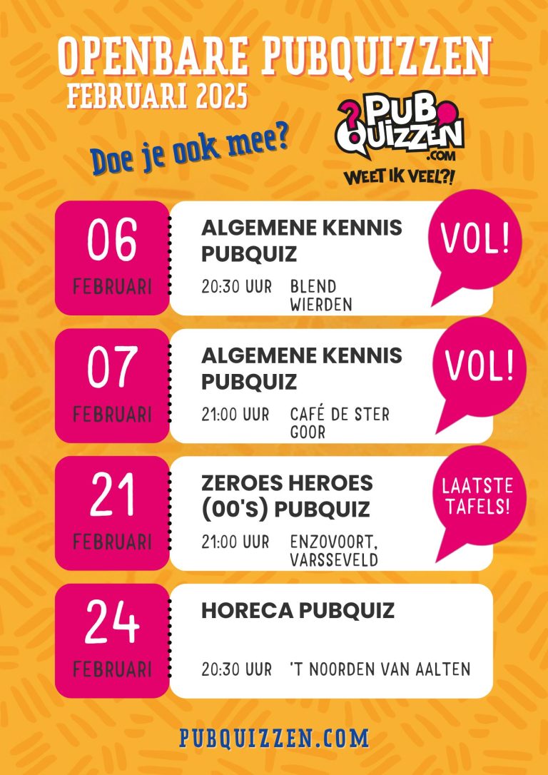 En later dit jaar start ik nog met een nieuw concept, iets heel anders dan pubquizzen, maar daar mogen jullie me te zijner tijd dan wel weer vragen over stellen!”.