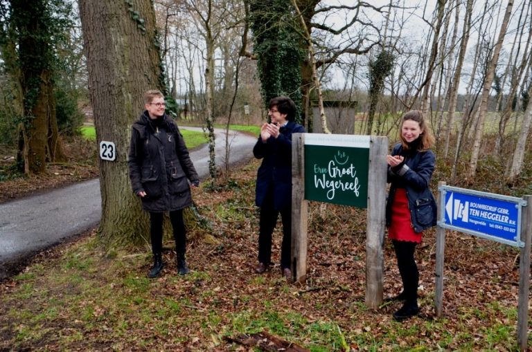 Vrijdag 12 maart stond al tijden in de agenda van Wendy Doeschot, eindelijk was het dan zover! De officiële opening van B&B Erve Groot Wegereef aan de Slotsweg even buiten Hengevelde. Deze werd gisteren vanwege de coronapandemie met slechts een handjevol mensen gevierd. De officiële handeling werd verricht door Charlotte Solms, gravin en bewoonster van kasteel Weldam met haar man Carl (zie foto boven). Zij plaatsten samen het welkom bord aan de weg onder toezicht van de trotse Wendy Doeschot en Alfons Pierik.