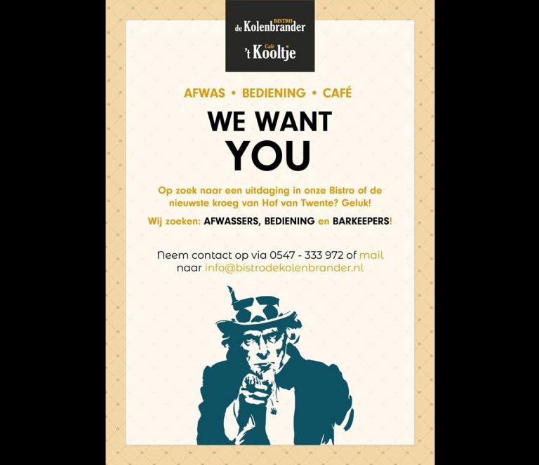 Bistro de Kolenbrander en Café ’t Kooltje zoeken medewerkers