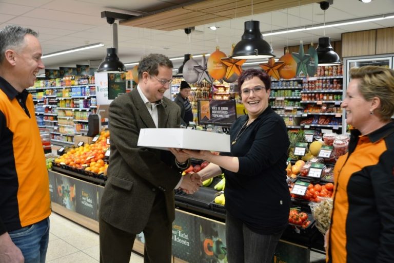 De samenwerking tussen ondernemers en gemeente heeft dit jaar maar liefst 107 matches opgeleverd tussen werkgevers en werkzoekenden met een afstand tot de arbeidsmarkt. Dat betekent dat het doel van 100 matches ruimschoots is gehaald. Kandidaat Bianca en ondernemers Carla en Stefan Hemel van COOP Hengevelde ontvangen uit handen van wethouder Pieter van Zwanenburg een taart ter ere van de 100 behaalde matches.