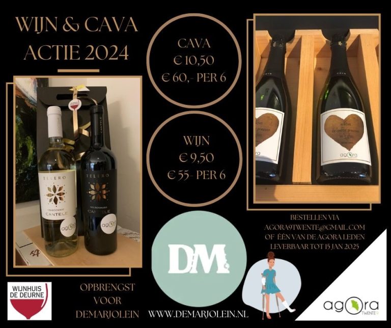 Door middel van de verkoop van Cava, een Italiaanse rode Negroamaro en witte wijn Chardonnay steunen wij DeMarjolein!