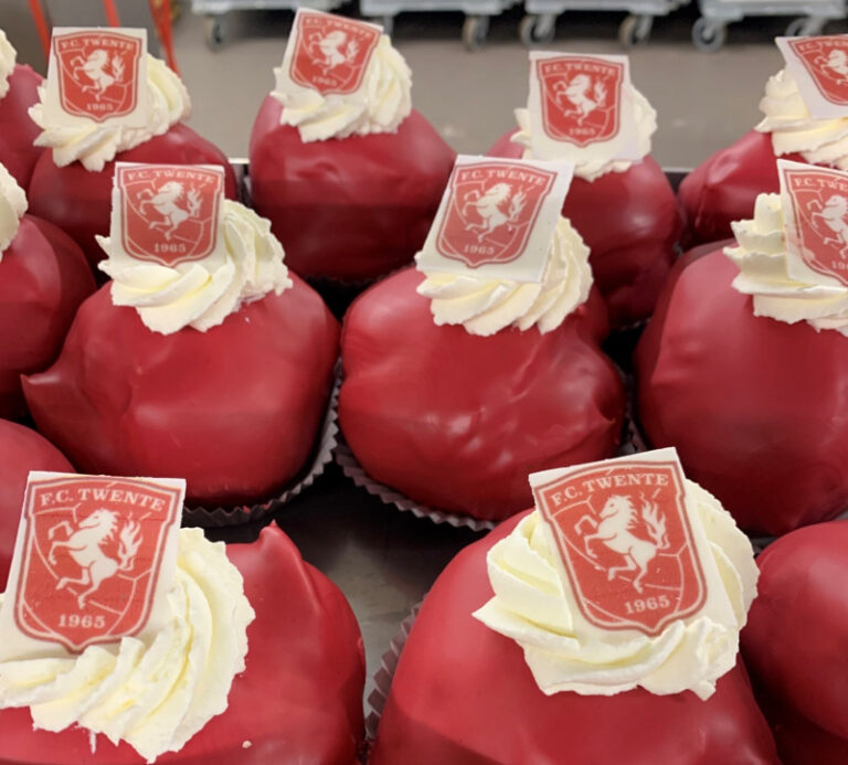 FC Twente gaat Europa in! Dat werd duidelijk na de ruime overwinning op Groningen รฉn het gelijke spel van AZ. Om het behalen van Europees voetbal te vieren liggen er vanaf vanochtend (vrijdag 13 mei) speciale FC Twente bollen in de schappen bij de lokale Jumbo’s in de regio. Deze ambachtelijke bollen zijn rood van kleur met het FC Twente logo, gemaakt door Bakkerij Nollen!