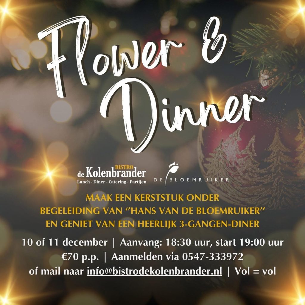 Flower & Dinner op 10 en 11 december bij Bistro de Kolenbrander in Hengevelde