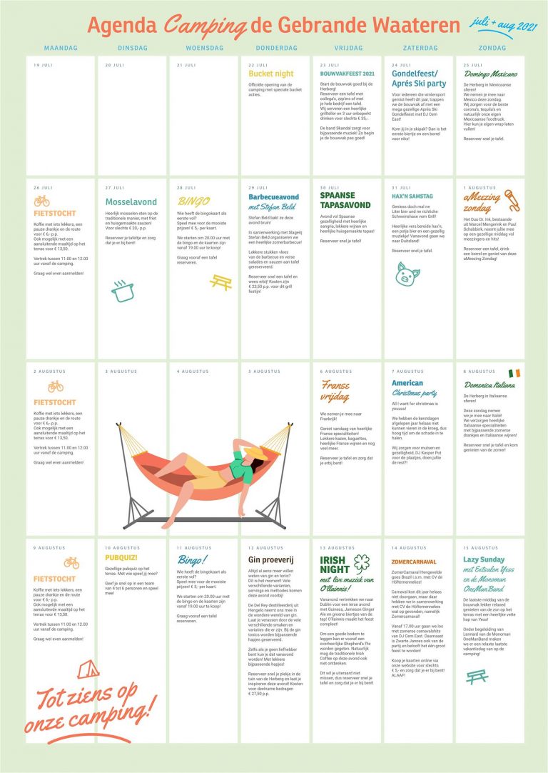 Met de vernieuwde maatregelen moet Herberg de Gebrande Waateren helaas een aantal activiteiten schrappen. Casper Bebseler van de Herberg hierover: “Gelukkig zijn er ook veel activiteiten die wel kunnen doorgaan!! We houden jullie van week tot week op de hoogte van de planning en ontvangen jullie graag!”. Hieronder het programma: