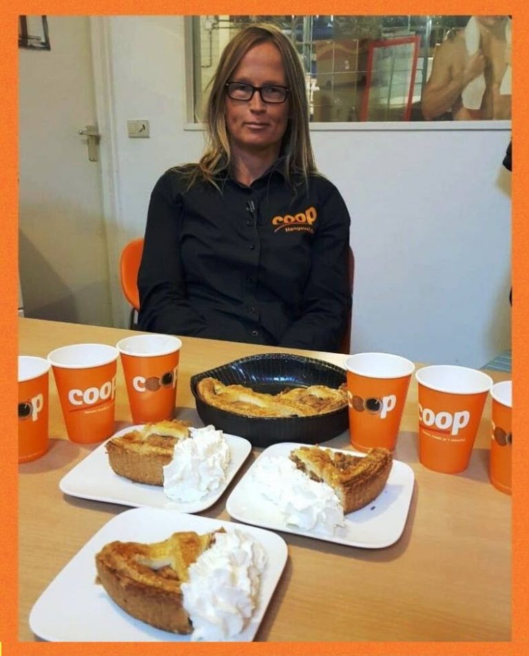 Daarom een lekkere appeltaart voor bij de koffie als gevolg van de gewonnen weddenschap!"