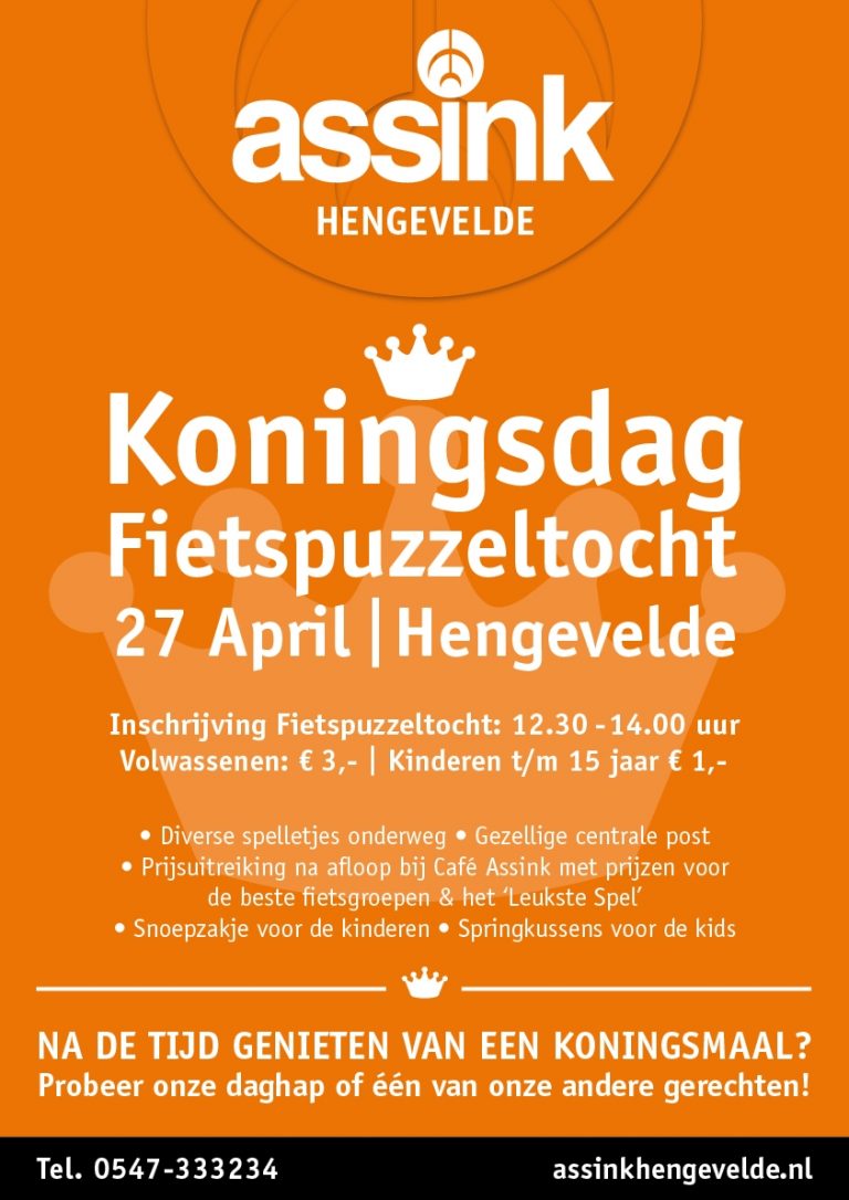 Ook dit jaar organiseert Assink weer de traditionele Fietspuzzeltocht op Koningsdag. We zorgen voor een niet té lange tocht, een gezellige Centrale Post en voor leuke spelletjes onderweg. Voor deze spelletjes zijn we nog op zoek naar enthousiaste jongens en meiden die een spel willen organiseren!
