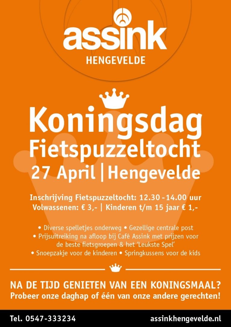 Ook dit jaar organiseert Assink weer de traditionele Fietspuzzeltocht op Koningsdag. We hopen op beter weer dan vorig jaar, zodat we niet noodgedwongen naar binnen moeten verhuizen. We zorgen voor een niet té lange tocht, een gezellige Centrale Post en voor leuke spelletjes onderweg.