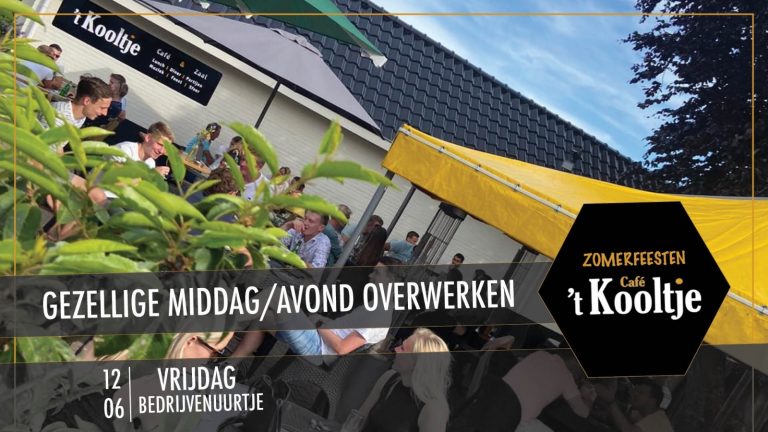 Het terras is groot genoeg, dus reserveren is niet nodig. Tenzij je zeker wil zijn van je plekje kun je Sem appen (0613516768). Vrijdag starten we het 'mini-bedrijvenuurtje' in stijl met een fijne DJ. Iedereen die in 'werk/beunkleding' komt, krijgt het eerste rondje van het huis. Tot morgen, op uiteraard de tijd zoals het hoort te zijn: Kwart over VIER, tijd voor BIER (16:15u dus)!