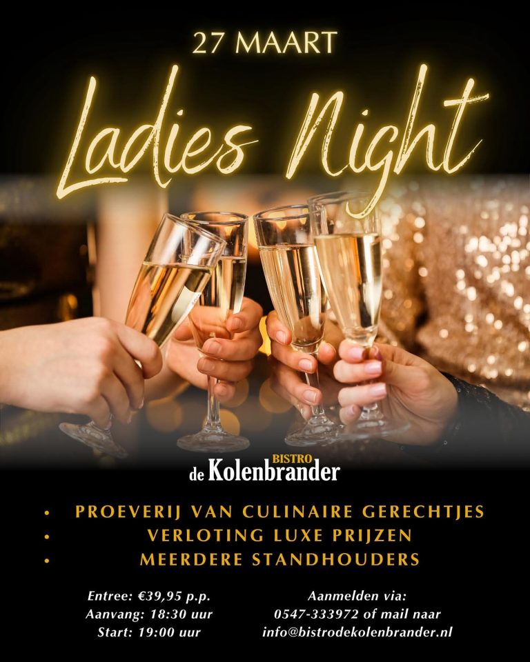 Hou jij van lekker eten, verrassingen en gezelligheid? Trommel dan je vriendinnen op, want op donderdag 27 maart organiseert Bistro De Kolenbrander een sprankelende Ladies Night!