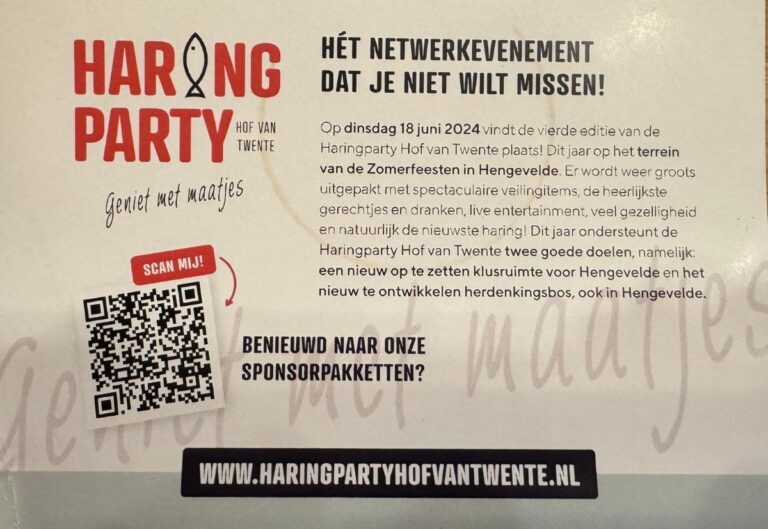 Nicola Wilmink deed namens de organisatie van de haring party die in het verschiet ligt. Brian Kuipers is namens Hengevelde de kar trekker in deze. De Haringparty Hof van Twente stelt zich ten doel om in de verschillende kernen van de Hof van Twente een netwerkevenement te organiseren voor ondernemers en andere geïnteresseerden in de Hof van Twente. Ieder jaar wordt er besloten in welke kern dit gebeurt. Met de opbrengst wordt een goed doel ondersteund dat leeft in de betreffende kern en wat voor de gehele Hof van Twente interessant is. Dit gebeurt door het verkopen van entreekaarten voor de Haringparty en het houden van veiling tijdens het evenement van verschillende ter beschikking gestelde items en vindt er een veiling plaats van het eerste vaatje haring.