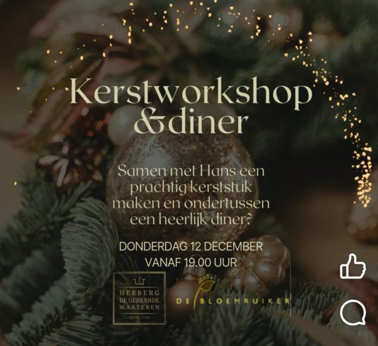 KERSTWORKSHOP & DINER 🎄🎅🏼🍴 | Op 12 december organiseren wij onze jaarlijkse kerstworkshop & dineravond. Wil jij samen met Hans van @bloemruikerhengevelde een prachtig kerststuk maken en ondertussen genieten van een heerlijk diner uit onze keuken? 👉 Meld je dan snel aan.