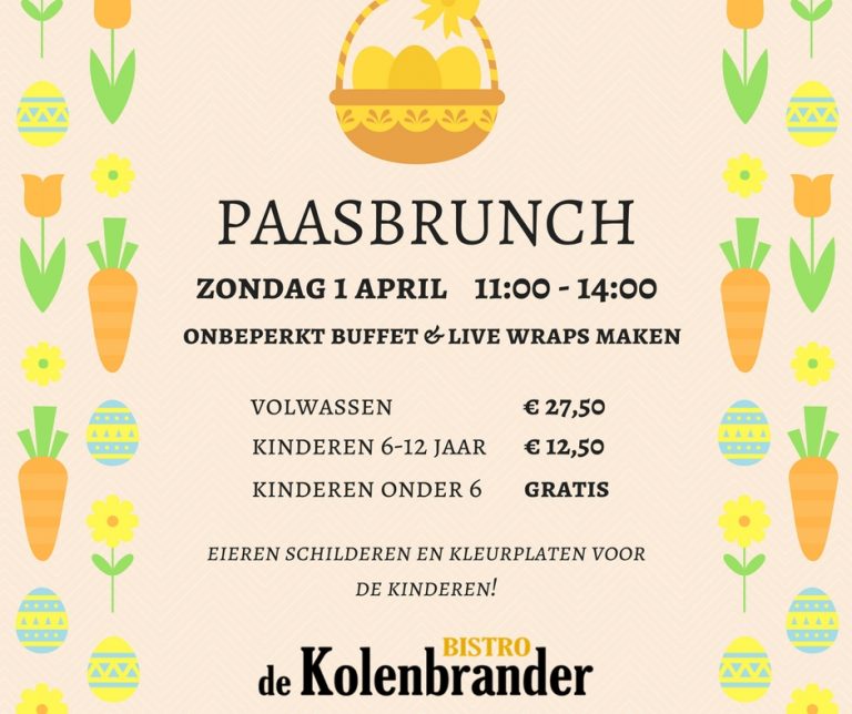 Paasbrunch 1e Paasdag bij de Kolenbrander van 11:00 tot 14:00 uur