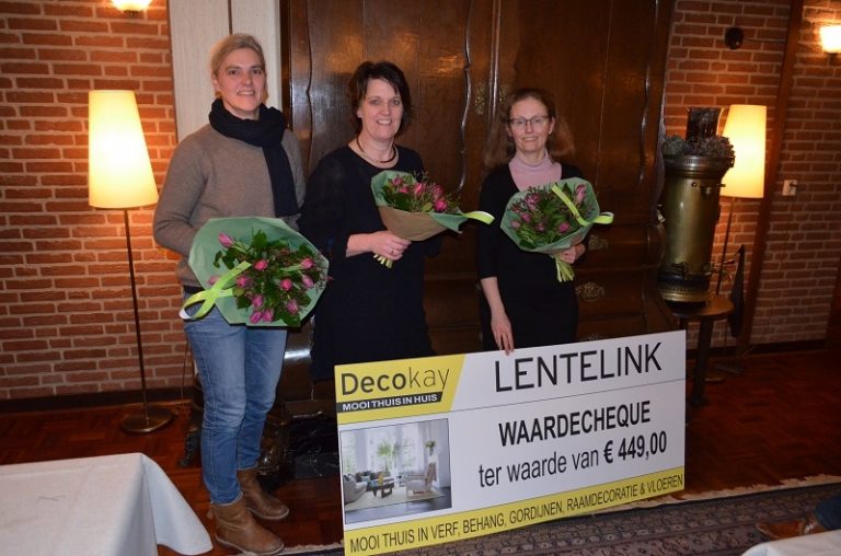 Mevrouw Papilon ontvangt haar (hoofd)prijs uit handen van Robert Lentelink van Decokay Lentelink