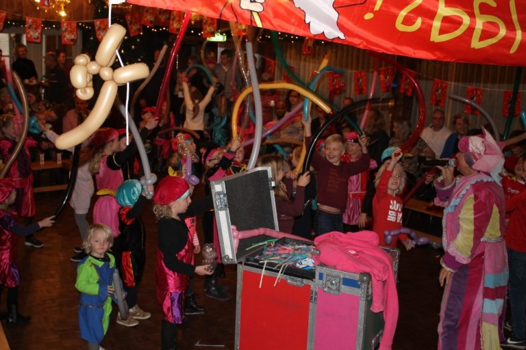 Er werd dan ook vol op gefeest, van een liedje tot aan een dansje. Dit samen met clown Funny. Er werd een leuke polonaise ingezet, en natuurlijk ook de mooie figuurballonnen mochten niet ontbreken op deze morgen. Ook was er nog een jarige in de zaal, Luca Ten Thije, deze werd uiteraard toegezongen door de hele zaal met een mooie ballonnen feesthoed van Clown Funny.