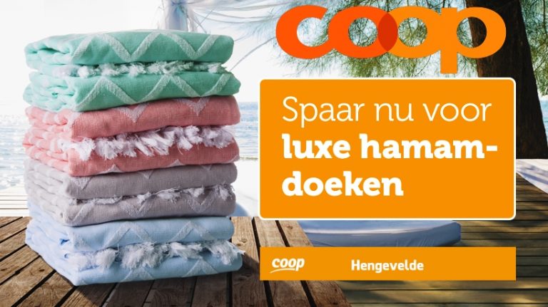 Nu we reikhalzend uitkijken naar de zomer, start bij Coop Hengevelde een nieuwe, aantrekkelijke spaaractie. Zes weken lang kunnen klanten van de winkel sparen voor prachtige hamamdoeken uit Egypte. Stefan Hemel, eigenaar van Coop Hengevelde : “De hamamdoeken zijn van een hoge kwaliteit en verkrijgbaar in vier mooie kleuren: blauw, groen, taupe en koraal. Zo kunnen klanten kiezen voor hun favoriet of natuurlijk voor een vrolijke mix. Eén ding is zeker: met deze prachtige badlakens kan de zomer beginnen.” Hamamdoeken zijn soepele, luchtige en lichtgewicht handdoeken die snel drogen. Perfect voor in de vakantiekoffer dus! De spaaractie van Coop start op maandag 23 april en loopt tot en met 3 juni 2018.