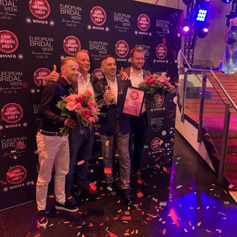 Rolf: “Bij de eerste twee categorieën die aan bod kwamen, kwamen we direct als winnaar naar voren. Dit werd gevierd met veel gejuich en applaus. We hebben deze prijzen gewonnen omdat onze klanten het vinden dat we op deze twee gebieden ontzettend goed presteren, constant blijven en innovatief zijn. We hoorden achteraf ook dat we heel dichtbij zaten om óók nog de “Best Bridal Supplier” te worden. Al met al iets om gigantisch trots op te zijn.”