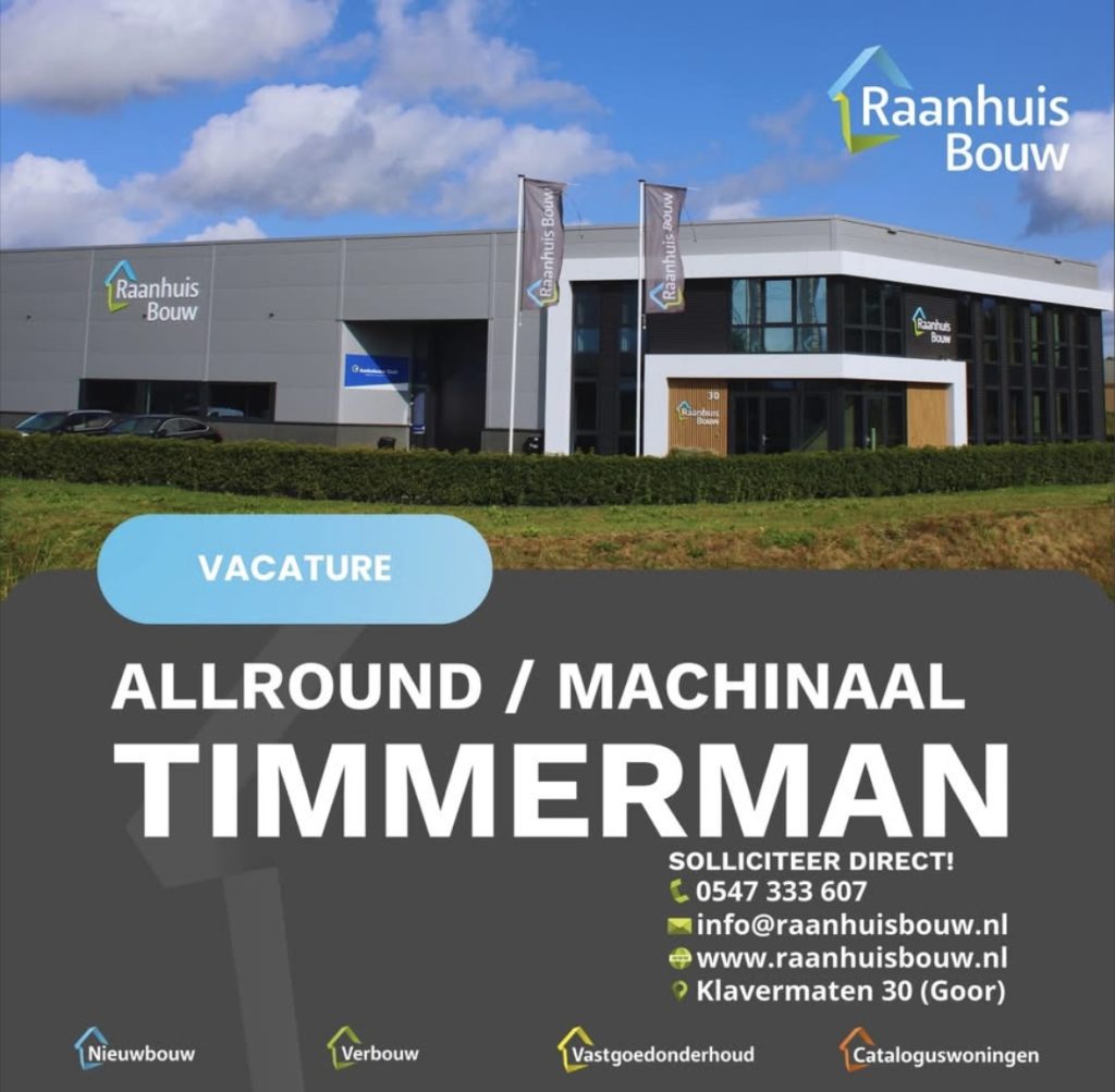 VACATURE | Allround / Machinaal Timmerman bij Raanhuis Bouw