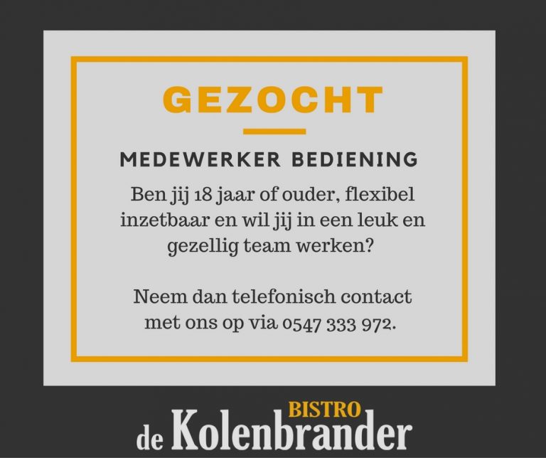 Bistro De Kolenbrander in Hengevelde is op zoek naar versterking voor hun team, klik op de afbeelding hierboven om de vacature te bekijken.