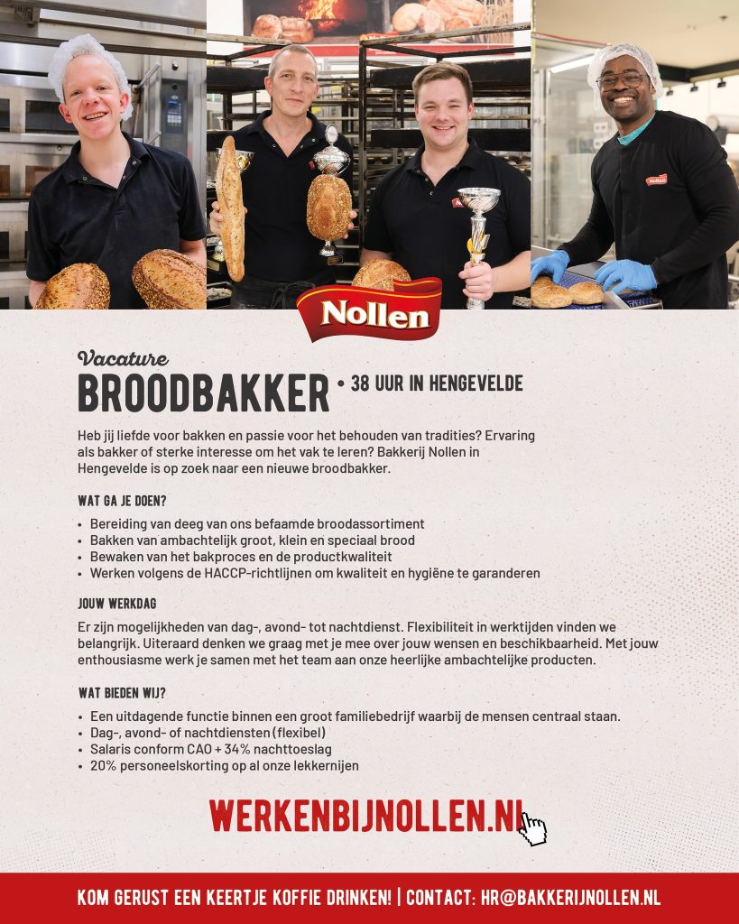 Heeft iemand een liefde voor bakken en een passie voor het behouden van ambachtelijke tradities? 🍞 Bakkerij Nollen in Hengevelde is op zoek naar een nieuwe broodbakker. 👨🍳