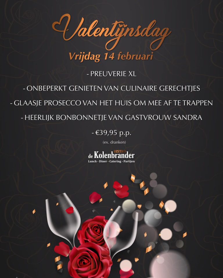 Op vrijdag 14 februari wordt de liefde gevierd bij Bistro de Kolenbrander met de speciale Preuverie XL. Dit arrangement is ideaal voor stelletjes die een prille romance hebben, een bijzondere mijlpaal vieren of gewoon van elkaars gezelschap willen genieten.