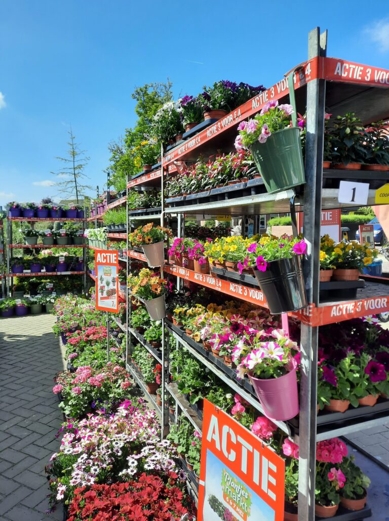 Dit jaar stond voor de 5e keer de plantjesmarkt op de agenda op de vrijdag en zaterdag voor moederdag. Het was een zonovergoten dag met goed gevulde bloemenkarren met bloeiende hangers en perkgoed voor de Coop.
